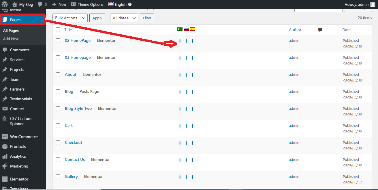 2. Install WPML in usual regular way (default order of languages, because in our plugin first language in order is also default) and add new pages for each langauge and page: