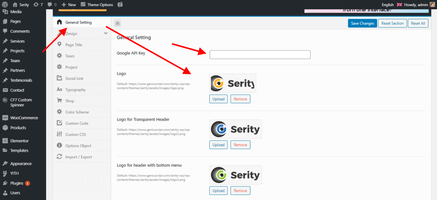 You can change the Logo Settings and insert the Google MAP API Key.