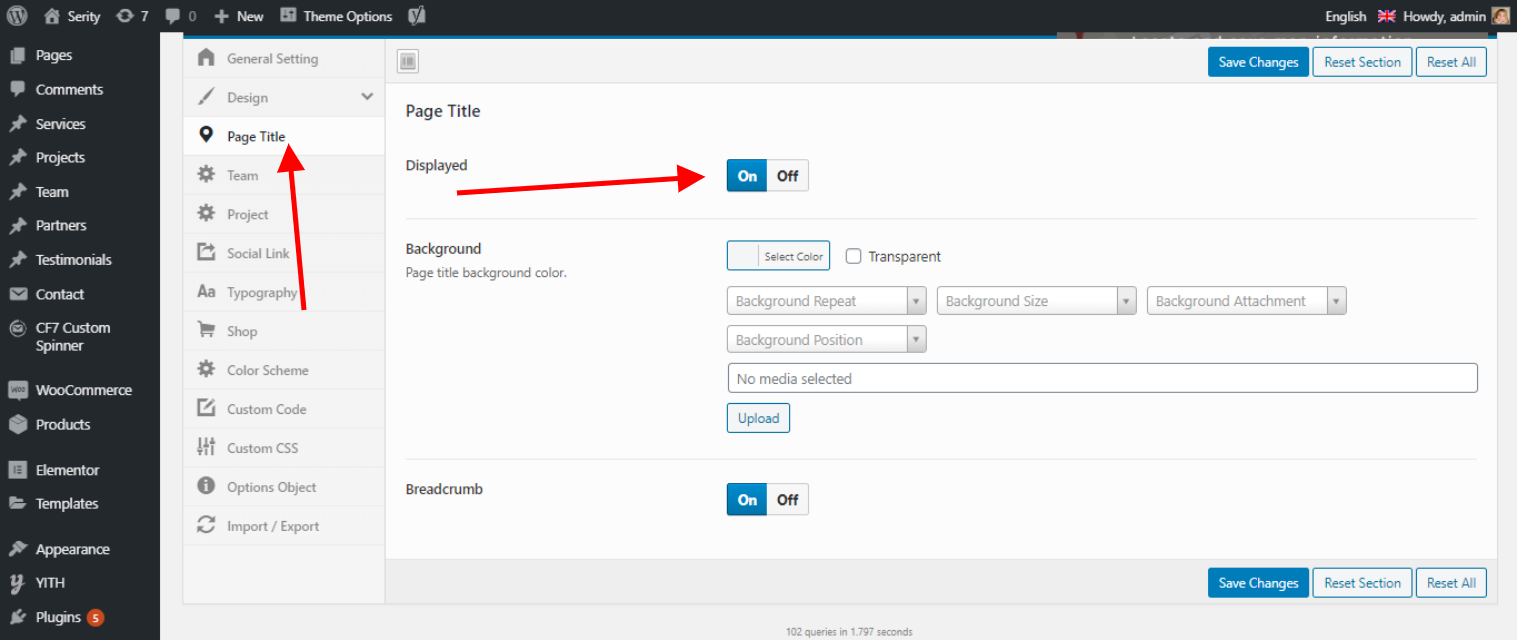 You can change page Title background and breadcrumbs settings