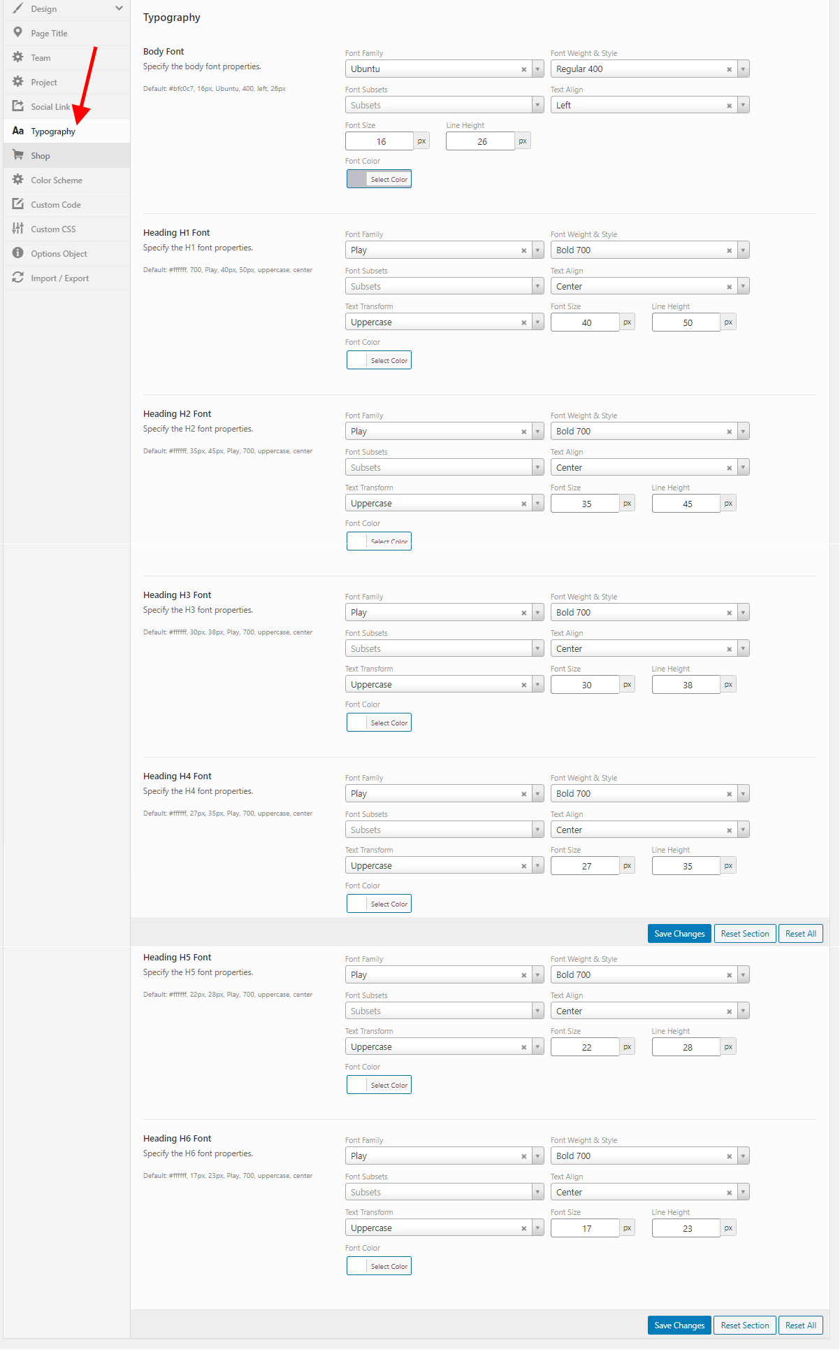 Admin -> Theme Options -> Typogrophy